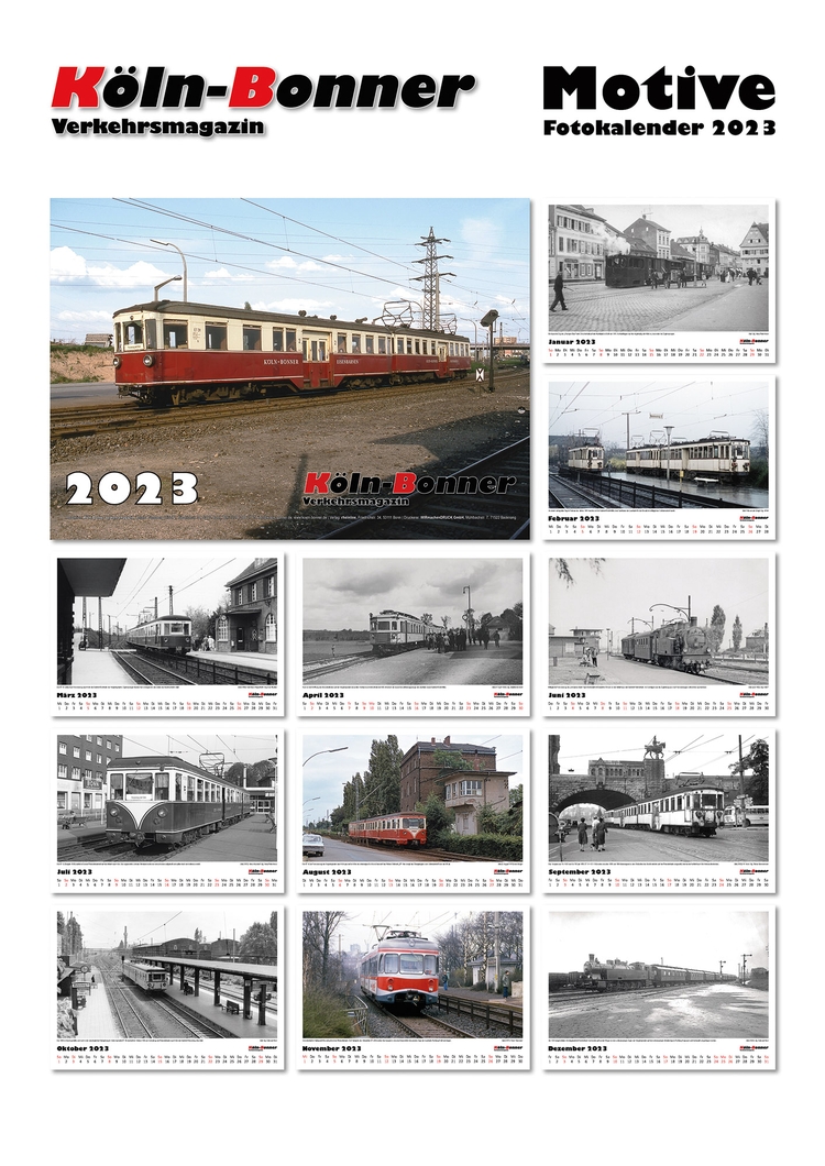 auf eine Zeitreise über die Vorgebirgsbahn, die Rheinuferbahn, die Querbahn und nicht zuletzt die Schwarze Bahn der Köln-Bonner Eisenbahn. Format: 42 x 29,7 cm (DIN A3 quer), Einzelpreis 19,80 € zzgl. 4,80 € Versand.